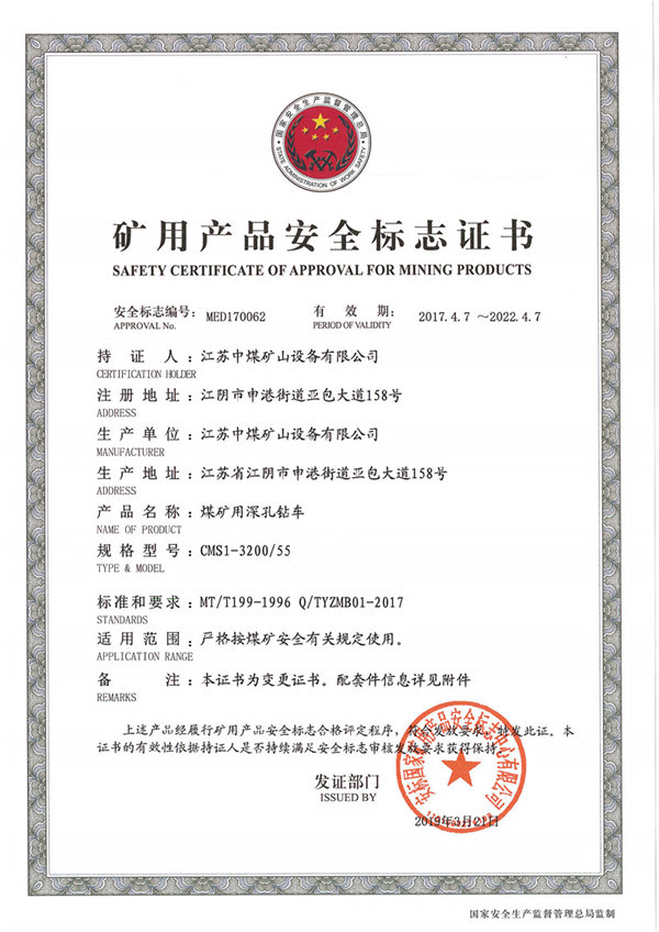 CMS1-1200/30A、CMS1-2000/55、CMS1-3200/55、CMS1-6500/75型煤矿用深孔钻车是新一代履带行走的探水、探瓦斯、探断层、放顶、注水等的钻孔设备,可实现180°水平回转,垂直升降700mm,-20°~ +45°俯仰角的全方位钻孔作业,主要用于掘进工作面有防突措施要求的在软岩或煤层中实施密集形钻孔,也适用于其他场合。该设备具有结构紧凑、操作灵活、机动性好、全断面作业、安全性能好、一机多用等特点。除完成探水、探瓦斯工作外,还可钻进复杂地层。它配套普通扩孔钻头等钻具可进行回转钻进。