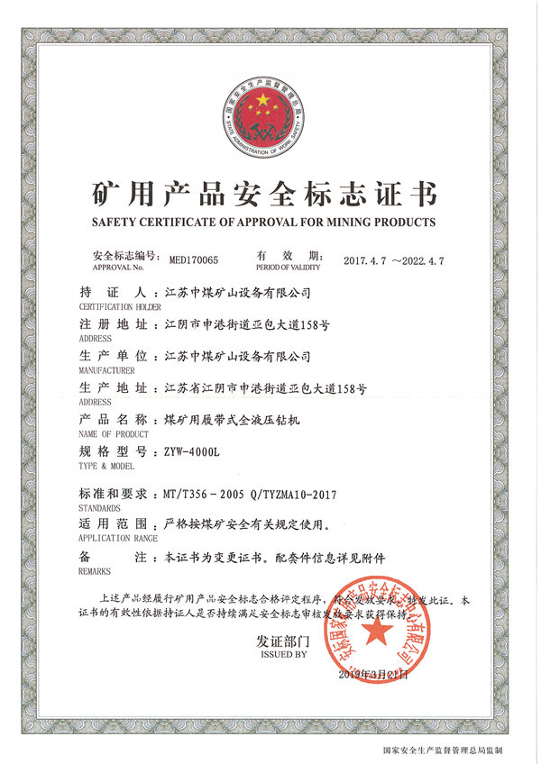 ZYW-6000L、ZYW-4500L、ZYW-4000L、ZYW-3200L型煤矿用履带式全液压钻机是新一代履带行走的探水、探瓦斯、探断层、放顶、注水等的钻孔设备,主要用于掘进工作面有防突措施要求的在软岩或煤层中实施密集形钻孔,也适用于其他场合。该设备具有结构紧凑、操作灵活、机动性好、全断面作业、安全性能好、一机多用等特点。除完成探水、探瓦斯工作外,还可钻进复杂地层。它配套普通扩孔钻头等钻具可进行回转钻进。