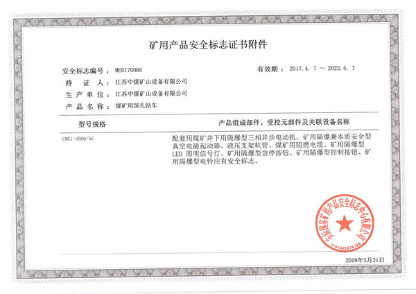 CMS1-4500/55型煤矿用深孔钻车是新一代履带行走的探水、探瓦斯、探断层、放顶、注水等的钻孔设备,可实现180°水平回转,垂直升降770mm,-45°~ +75°俯仰角的全方位钻孔作业,主要用于掘进工作面有防突措施要求的在软岩或煤层中实施密集形钻孔,也适用于其他场合。该设备具有结构紧凑、操作灵活、机动性好、全断面作业、安全性能好、一机多用等特点。除完成探水、探瓦斯工作外,还可钻进复杂地层。它配套普通扩孔钻头等钻具可进行回转钻进。